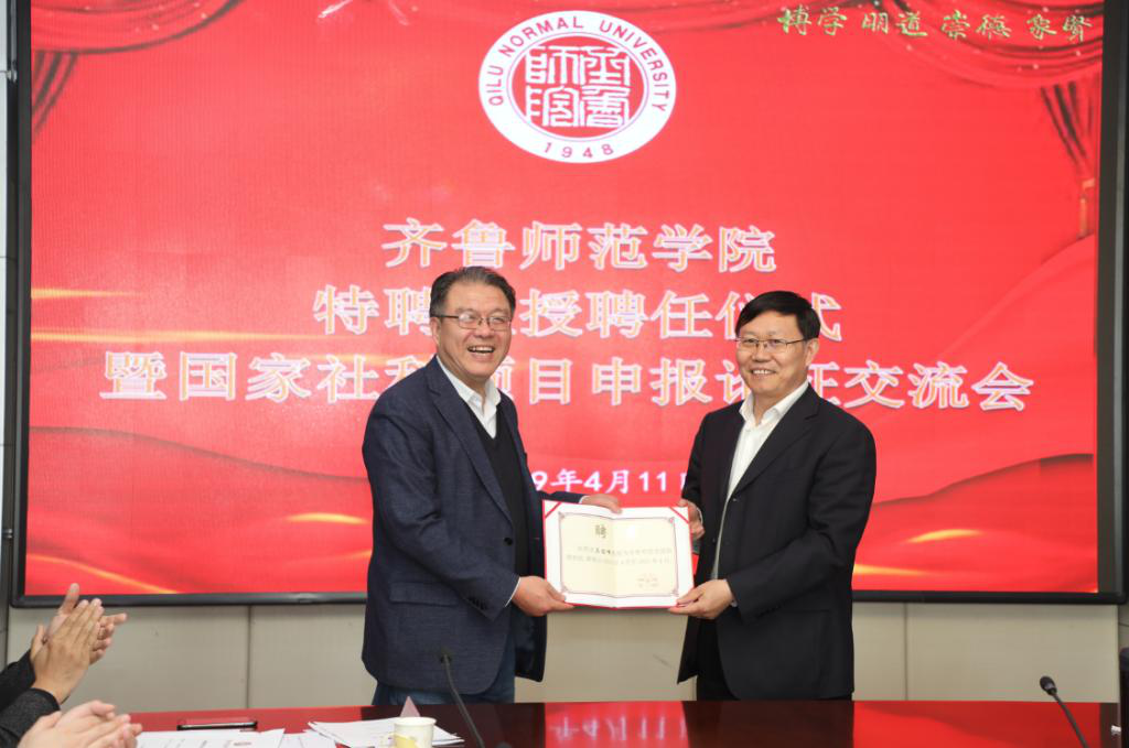 4月11日,教育部特聘教授、中国人民大学二级教授、博士生导师马俊峰聘任仪式暨国家社科项目申报论证交流会在章丘校区举行,党委副书记、校长林松柏教授为马俊峰颁发聘书,人事处、科研处和马克思主义学院全体教师及学生代表参加仪式。