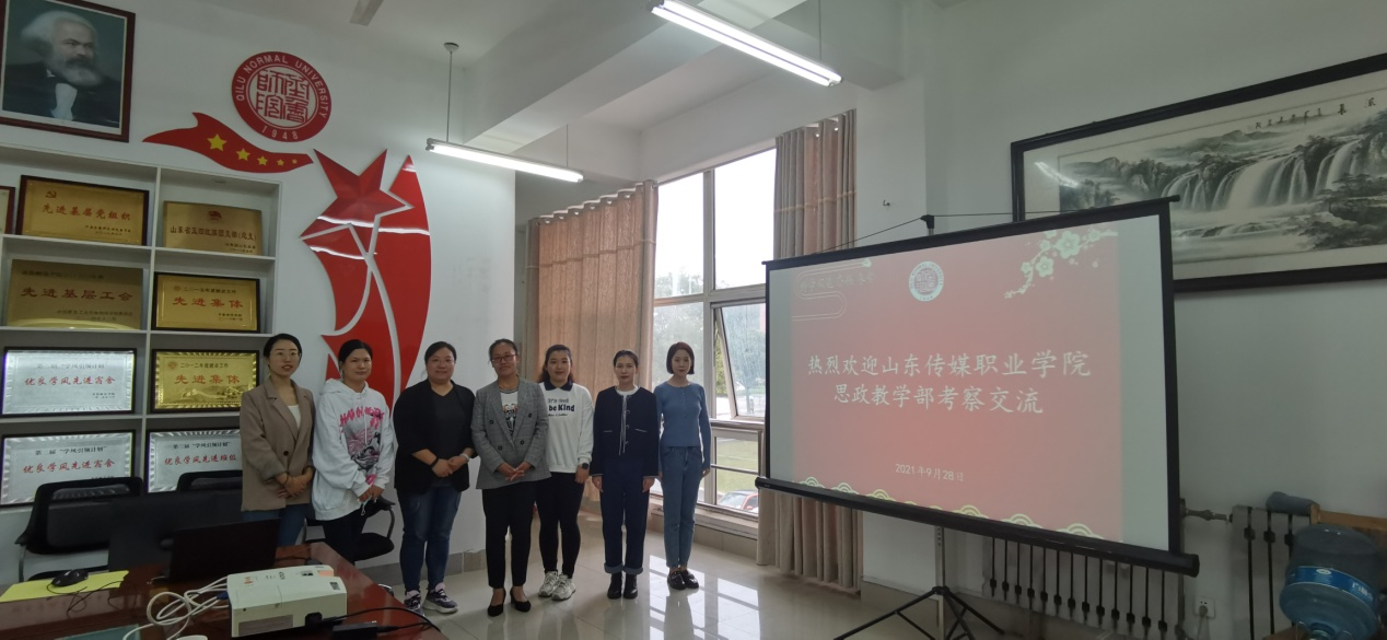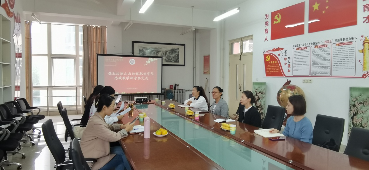 为深入贯彻习近平总书记关于教育的重要论述特别是学校思政课教师座谈会精神,贯彻落实中央、国办《关于深化新时代学校思想政治理论课改革创新若干意见》(中办发【2019】47号)要求,建立健全大中小思政课一体化建设机制,落实全省大中小学思政课“双协同双提升”项目,2021年9月28日下午,山东传媒职业学院思政教学部一行来我院进行考察交流,开展全省大中小学思政课“双协同双提升”项目课程交流情况。