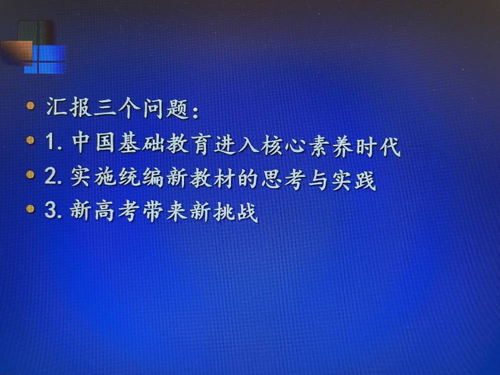 黄教授主要从中国基础教育进入核心素养时代、实施统编教材的思考与实践、新高考带来新挑战等三个方面深入浅出地为广大师生阐述了中国基础教育正在发生的深刻变革。黄教授从教育的根本任务是立德树人开始谈起,介绍了中国学生发展核心素养的凝练过程;通过大量鲜活的教学案例分析了中学思政课教学目标、教学内容、教学流程、教学方法、教学评价等方面在教学实践过程中的创新和运用;最后黄教授还介绍了我们应该如何应对新高考方案对于中学思政课教学带来的挑战。