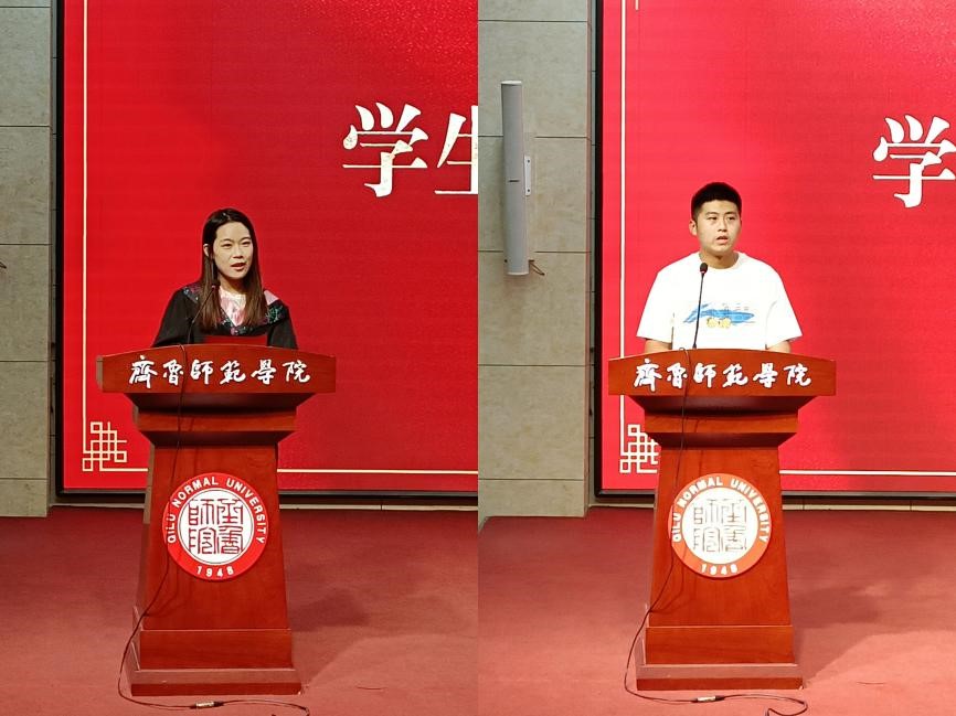 教师代表李馨、王雅文,分别向2022届毕业生们提出了“踏实做事、诚实做人、扎实做学问”的殷切希望。学生代表葛晓梅、崔殿龙分别为毕业学子们送上临行嘱托和美好祝福。