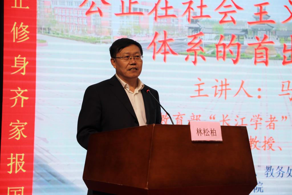 林松柏校长辅讲时指出,公正是人民运用共同制定的规则来待人处事,它不是一个抽象的概念,而是与特定的历史发展阶段相联系、与一定发展阶段的生产力水平相适应的具体概念。同是指出,本次讲座学术性强,集理论性与通俗性于一身,有利于我们更准确的理解社会主义核心价值体系、社会主义核心价值观和“公正”在其中的地位和含义。最后,林校长强调“国是讲坛”是我校进行马克思主义理论教育、培养青年马克思主义者的重要载体,是加强学生马克思主义理论学习的重要平台,希望同学们进一步坚定共产主义远大理想和中国特色社会主义的共同理想,在学习和生活中做到知行合一,努力将自己锻造为德智体美劳全面发展合格的建设者和接班人,切实担当起实现中华民族伟大复兴的大任。