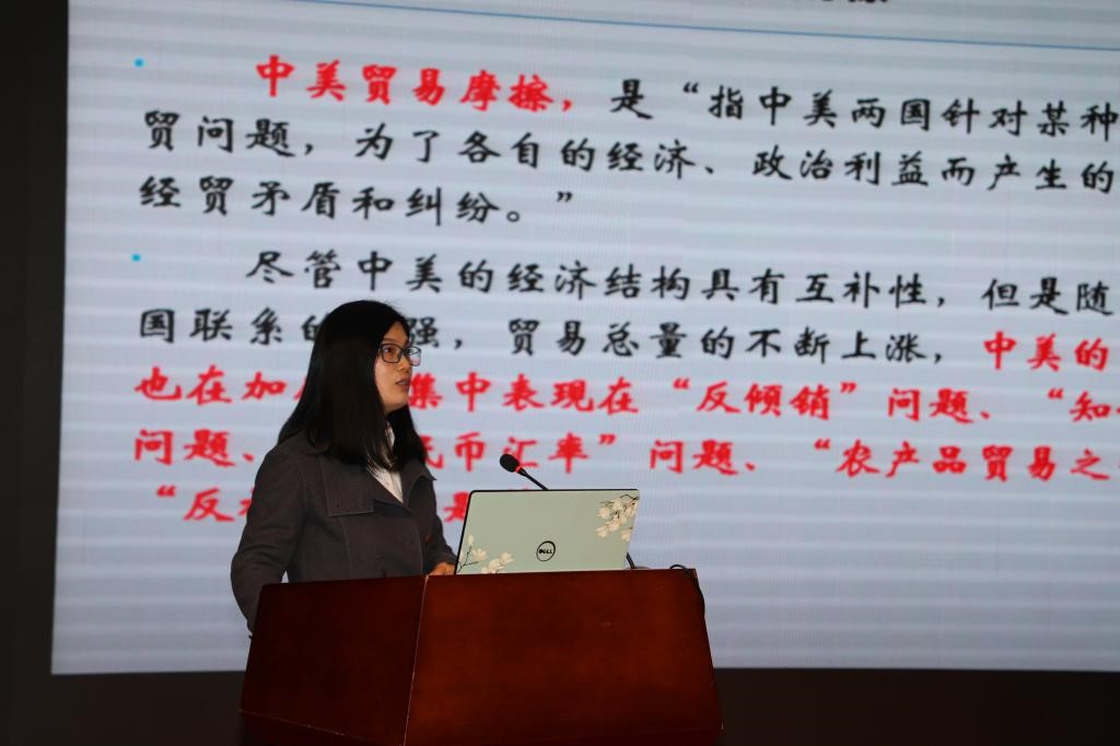 就广大学生所关心的中美贸易摩擦的许多问题,赵欣主任从中美经贸摩擦及其过程、中美经贸摩擦的原因及实质、中美经贸摩擦对我国的影响、中国如何应对、我国应对中美经贸摩擦的底气和优势等五个方面予以了解读。首先,赵欣老师讲到贸易摩擦的定义,即贸易摩擦是指国与国之间在进行贸易往来的过程中在贸易平衡问题上所产生的摩擦,一般是由于一国的持续顺差、另一国的持续逆差或一国的贸易活动触及或伤害另一国的产业所引起的。进而,提到了美国所进行的“301”调查。对于美国所进行的“301”调查,辅讲人王晓梅教授进行了较为详尽的论述,指出美国的“301”调查是为美国的贸易保护主义而生的,“301”条款授权美国贸易代表可对他国不合理或不公平贸易做法发起调查,并可在调查结束后建议美国总统实施加征关税等单边制裁。根据这项条款,美国可以对它认为是"不公平"的其他国家的贸易做法进行调查,并可与有关国家政府协商,最后由总统决定采取提高关税、限制进口、停止有关协定等报复措施。接着,赵欣主任着重分析了中美贸易摩擦产生的原因,包括美国所谓“中美贸易逆差”、经济全球化背景下国际产业转移、中美贸易的结构加剧了双边贸易的不平衡和美国出口管制加剧了双边贸易不平衡等四个方面的原因。同时,她强调指出,中美贸易摩擦对已经站起来、富起来并逐渐强起来的我们国家的不利影响有限、可控,但我们也不应掉以轻心,应当拥有底线思维,拥有大国公民的心态,做好应对中美摩擦的各种准备。最后,赵欣主任指出,作为新时代的大学生,面对错综复杂的中美贸易擦,必须相信我们的党和政府有足够的智慧和能力处理好我们所遇到的一切,既要仰望星空又要脚踏实地,放眼长远,立足当前,以道德素质、思想政治素质的提升为前提,以专业素质和能力的提升为核心,全方位提升自身的素质和能力,健康成长、和谐成才。