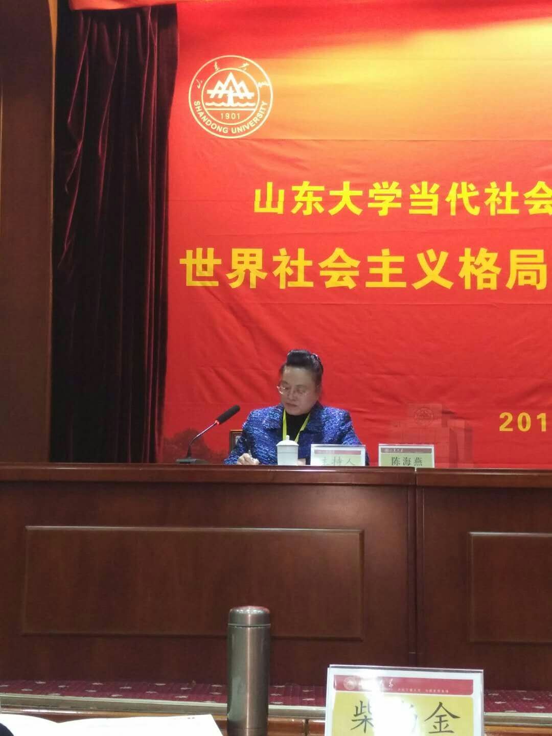 2017年11月3日至5日,教育部重点研究基地——山东大学当代社会主义研究所主办的“世界社会主义格局变化中的中国特色社会主义”学术年会在山东大学中心校区邵逸夫科学馆报告厅举行,来自中央编译局、中联部、中国社会科学院、中国人民大学、北京大学、北京交通大学、南开大学、武汉大学、山东大学、华中师范大学、辽宁大学、鲁东大学等高等院校和科研院所60多名代表参加了学术研讨。我院陈海燕教授出席会议,并主持了“新时代中国特色社会主义”单元的大会发言。
