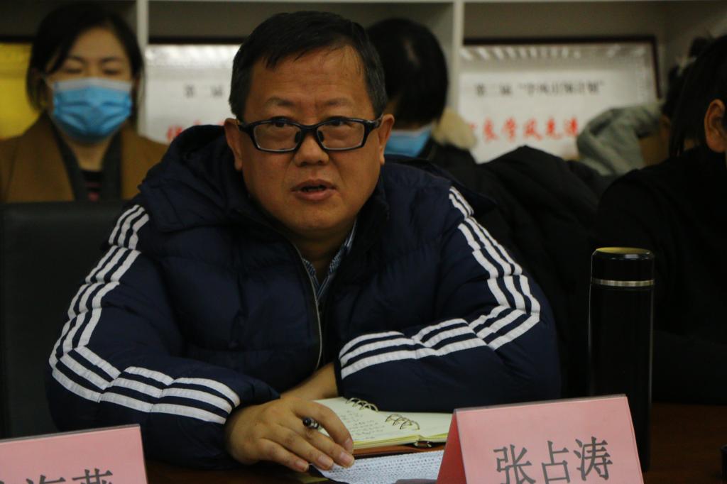 在解读交流环节,马克思主义学院刘振光教授以“关于将党的十九届六中全会精神融入思政课教学的思考”为题,从深刻把握《决议》的若干要义、将党的十九届六中全会精神融入思政课教学的五个维度、融入思政课教学应当遵循的基本原则、融入思政课教学应当处理好的几大关系等方面进行讲解,提出思政课教师要充分发挥思政课的主渠道作用,切实将全会精神转化为最鲜活的教学资源,为提升思政课的思想性、理论性、针对性和亲和力注入强大的思想能量。之后,马克思主义学院老中青教师代表分别谈学习体会。陈海燕教授指出,思政课要坚持用学理支持政理,真正做到培根铸魂、启智润心,并深入解读了思政课教师应当抓住的《决议》中的核心要义。张占涛副教授围绕《政治经济学》教学有关内容,谈了如何将全会精神融入课程教学。2020年新进思政课教师孙燕丽表示,要继续深入学习全会相关文件资料、持续加深领悟,不断在百年党史中汲取养分,并融入于思政课的课堂教学中。