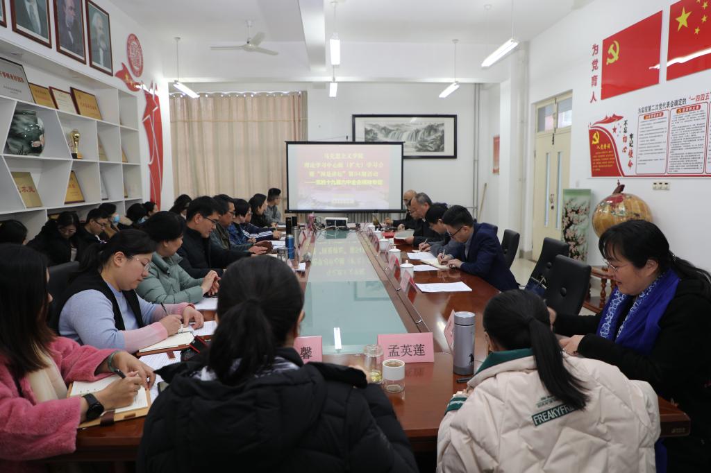 根据上级部署要求和学校党委工作安排,12月2日下午,马克思主义学院举行理论学习中心组(扩大)学习会暨“国是讲坛”第54期活动,对党的十九届六中全会精神进行专题学习研讨。省委党史学习教育第十八巡回指导组刘亚斌、闫旭两位同志到会指导,学校党委书记王玉华出席会议并讲话,党委宣传部副部长辛源、马克思主义学院全体教师、部分学生代表参加活动。会议由马克思主义学院党总支副书记赵立峰主持。