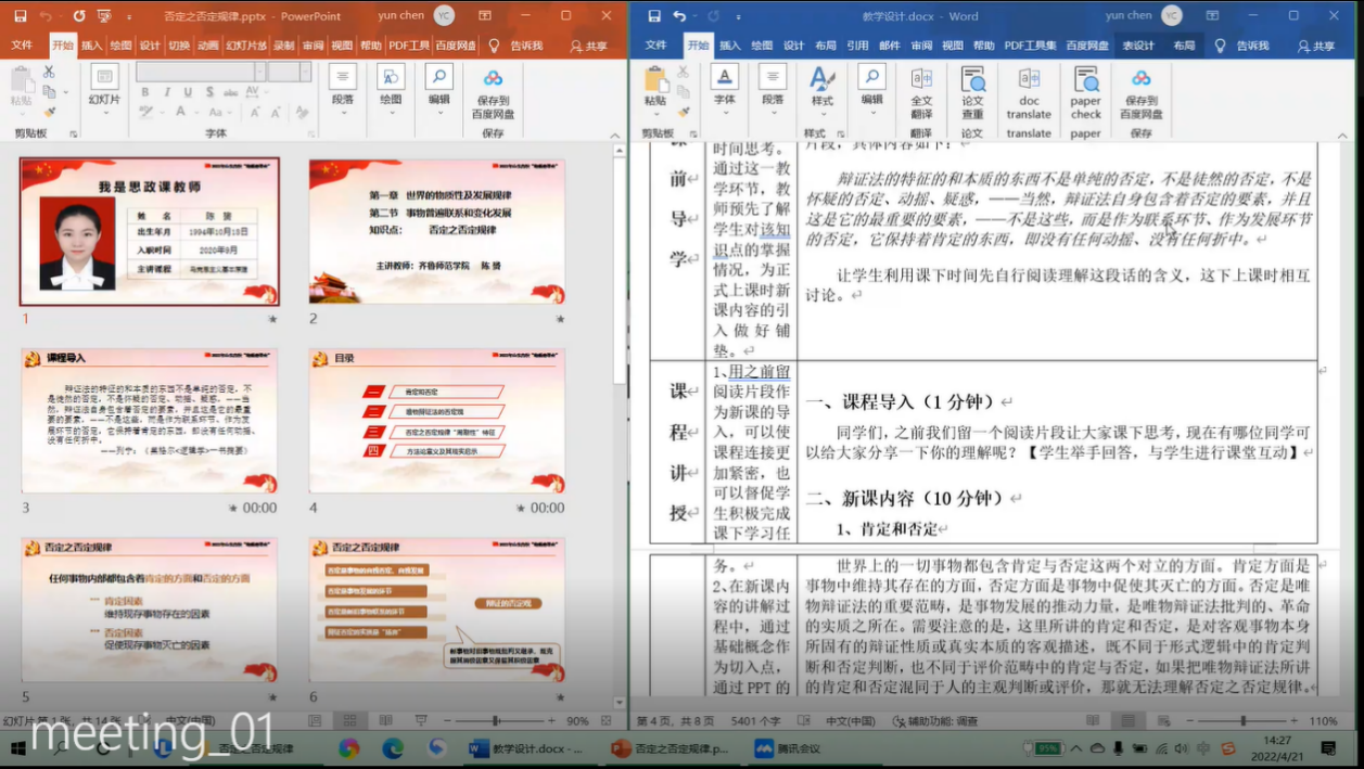4月21日下午,马克思主义学院通过腾讯会议在线举办“青马论坛”第十三期学术沙龙活动,本次活动以“萌新磨课会”为载体展开“马克思主义基本原理”课教育教学研究活动,扎实推进“原理”课改革创新,助力思政课建设和思政课教师队伍高质量发展。会议由“原理”课教研室主任孙静静副教授主持,教研室全体教师及学院部分教师参会。