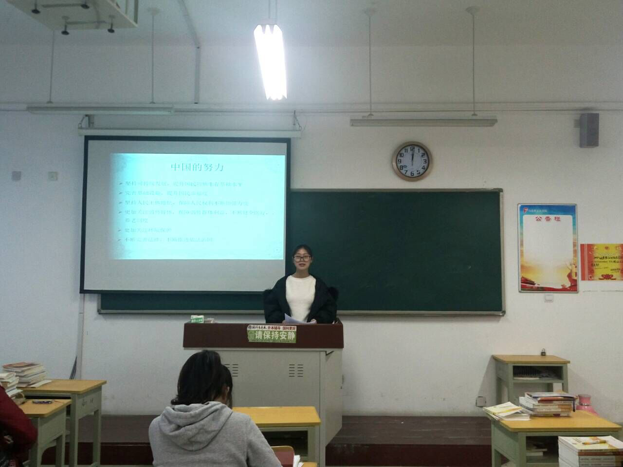 2016年12月8日,2014级思想政治教育本科班在二教A311教室进行了以“纪念《发展权利宣言》”为主题的政治学习。本次政治学习由陈雨、张曼玉主讲,2014级思想政治教育本科班全体同学参加。
