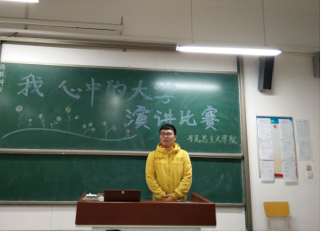 我院“我心中的大学”演讲比赛于2016年10月27日晚在2教A310教室成功举办,本次活动旨在让我院学生能够在大学生活中脚踏实地,树立正确目标,建立正确价值观。