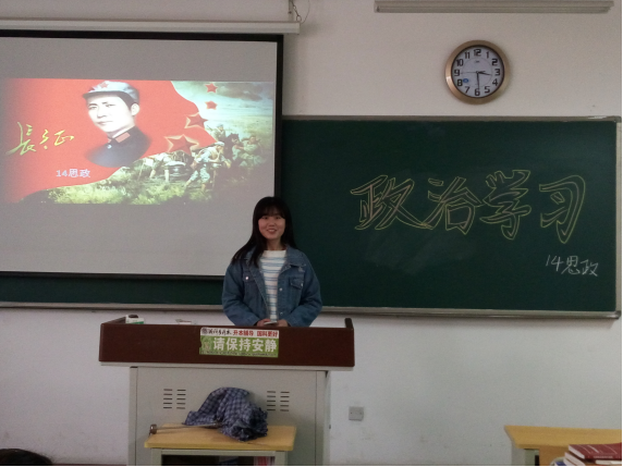 2016年10月28日,2014级思想政治教育本科班在二教A311教室进行了关于“国是讲坛第六讲:长征——闻所又见的故事”政治学习活动。本次活动由2014级思想政治教育本科班全体同学参加,由李颜雯和陆鸣主讲。