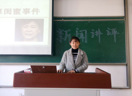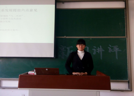本次活动以宿舍为单位分八个小组来进行。活动开始前,各组同学已经选取了一个新闻热点话题并就此展开了一系列的讨论。活动开始后,各个小组同学的代表依次上台与大家分享自己小组内所讲评的新闻。有的小组就“王毅外长从叙利亚问题解读中方立场”展开讲评,并表示中方将继续本着客观公正的立场,为叙利亚问题的政治解决发挥建设性作用;另外一组同学关注的热点问题是最近反响比较热烈的“朴槿惠闺蜜干政事件”,使同学们了解到紧张态势下韩国政局引起了各方关注;亦有一组同学着眼于社会新闻,就“考试临近高校内学生占座问题”展开了讲评,贴近生活实际,引起了同学们的共鸣。其他各个小组的同学也分别从国际新闻、国内新闻、军事新闻等几个方面与大家进行了交流。