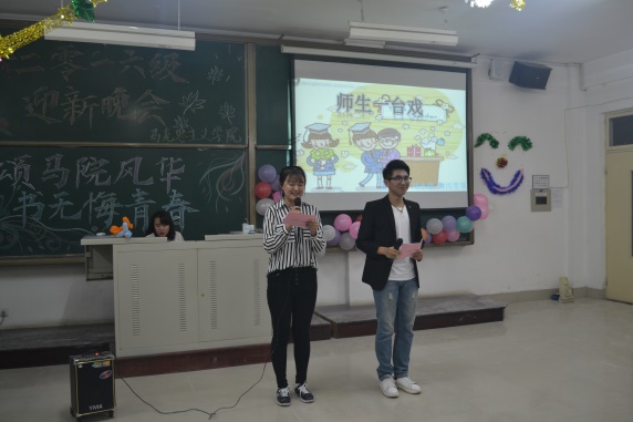 经过近半个月的精心准备和排练,我院于9月30日晚上在一教A202教室成功举办主题为“颂马院风华 书无悔青春”的2016年迎新晚会。马克思主义学院院长刘振光教授、党总支书记王晓梅教授及辅导员王雅文老师及我院全体学生参加了迎新晚会。