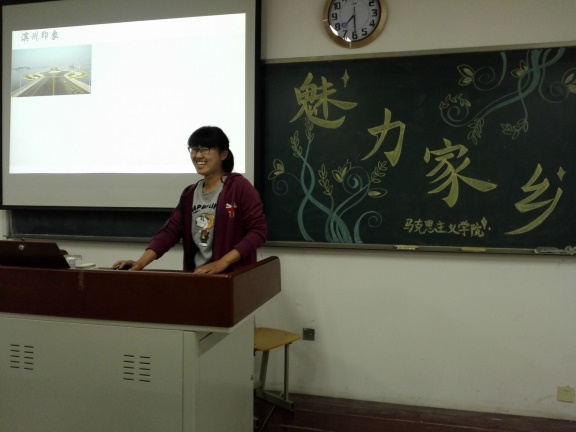 活动开始,2016级新生按照事先以家乡为单位组成的5个小组,分别上台通过ppt的形式展示了各自的家乡。此次活动中,新生们利用ppt上的图片、文字介绍并结合自己的经验看法,积极向大家分享自己家乡的风土人情、旅游景点、特色小吃等等,使得其他同学了解到了自己家乡的独特魅力。另外,本次活动的一大亮点便是“方言秀”环节,在此环节,来自不同地区的新生们被各种有趣的方言深深吸引。方言竞猜环节也极大地调动了新生们的积极性与参与度,使得2016级新生体会到大学的乐趣所在。