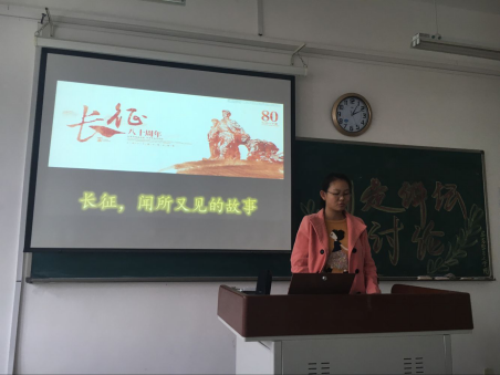 活动开始,同学们分别代表各自的小组上台分享了关于“国是讲坛第六讲:长征——闻所又见的故事”的所思所悟。同学们主要讲述了自己小组透过红军长征的艰辛历程以及红军长征中感动人心的众多故事,感悟到的长征中的不怕牺牲、前赴后继、坚韧不拔、百折不挠、克服困难的精神。另外,有些同学结合自己感悟到的长征精神提出了关于当代大学生应如何继承和发扬长征精神,如何把长征精神与时代发展相结合的看法,努力把长征精神内化到自己的日常生活和学习中。