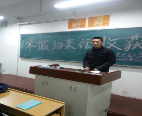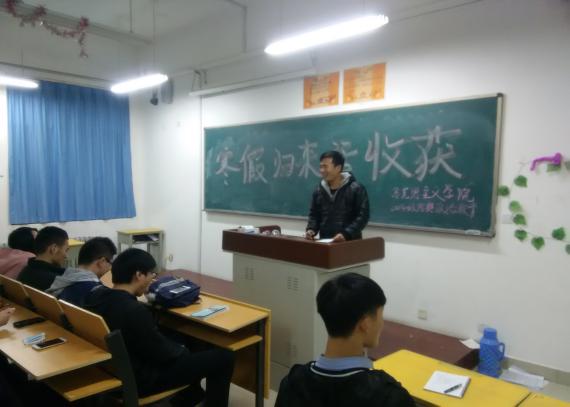 2016年3月13日晚上7点半,马克思主义学院2014级思想政治教育本科班全体同学在2号教学楼A506举行了主题为“寒假归来话收获”的主题班会。本次班会由班长卞正豪主持,辅导员王雅文老师到场发言。