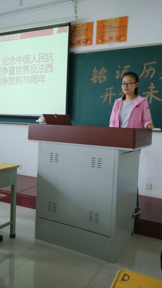 今年是中国人民抗日战争暨世界反法西斯战争胜利70周年,为纪念这一重大时刻,2015年9月11日下午3点半,14级思想政治教育班全体同学在2号教学楼A506举行了主题为“铭记历史、开创未来”的主题班会,陈长红同学主持班会。