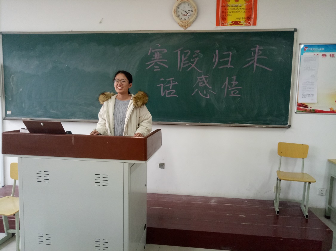 2018年3月15日,我院2016级思想政治教育本科班在二号教学楼A308教室进行了以“寒假归来话感悟”为主题的班会活动。此次班会由2016级思想政治教育教育本科班全体同学参加。