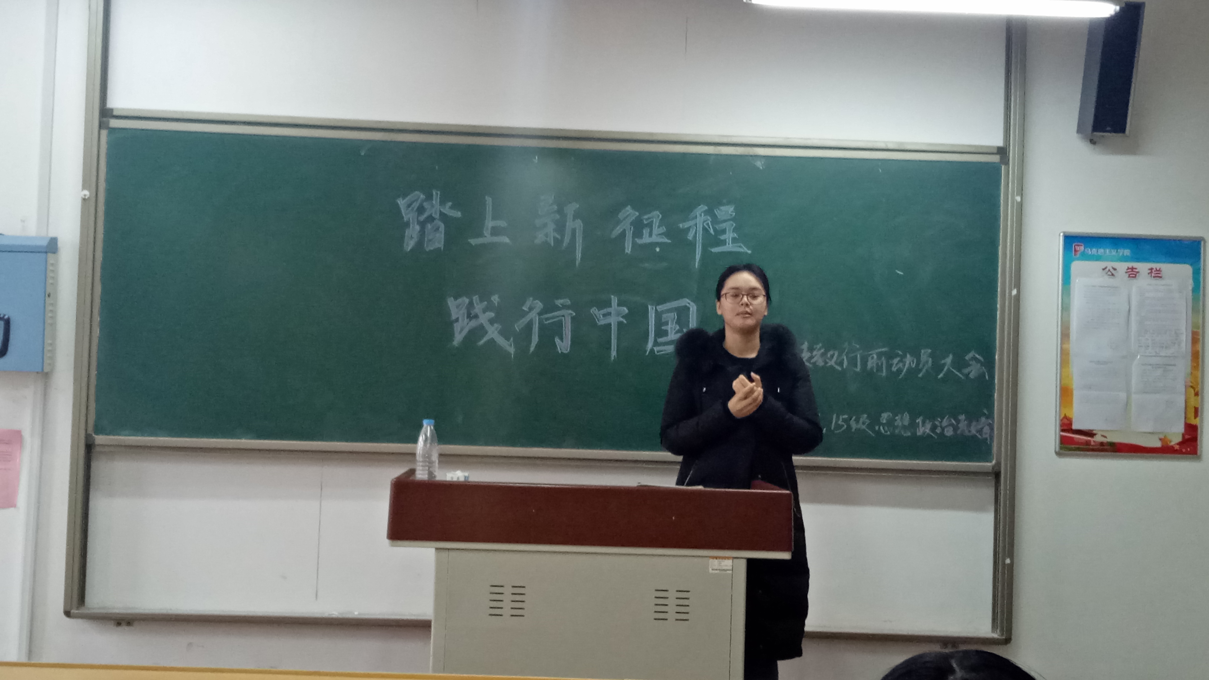 为动员大三同学以更加积极的心态参加支教工作,2018年3月6日,我院2015级思想政治教育本科班在二号教学楼A310教室开展了支教行前动员大会活动。参与本次活动的有马克思主义学院党总支书记王晓梅教授、院长刘振光教授、辅导员王雅文老师以及2015级思想政治教育本科班全体成员。