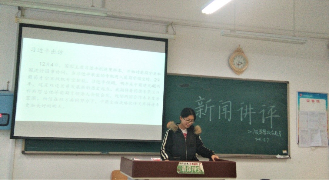 2018年12月07日,我院2017级思想政治教育本科班在2号教学楼A311教室进行了新闻讲评活动。参加本次活动的有2017级思想政治教育本科班全体同学。