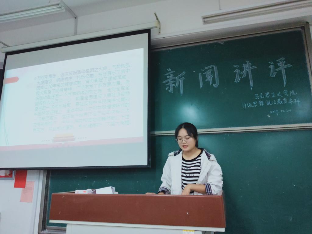 为提高同学们的政治参与热情,使同学们更好了解我国军队在多方面的发展状况,值此第七届军运会成功举办之际,我院2018、2019级思想政治教育专业全体学生于2019年10月20日举行了新闻讲评活动。