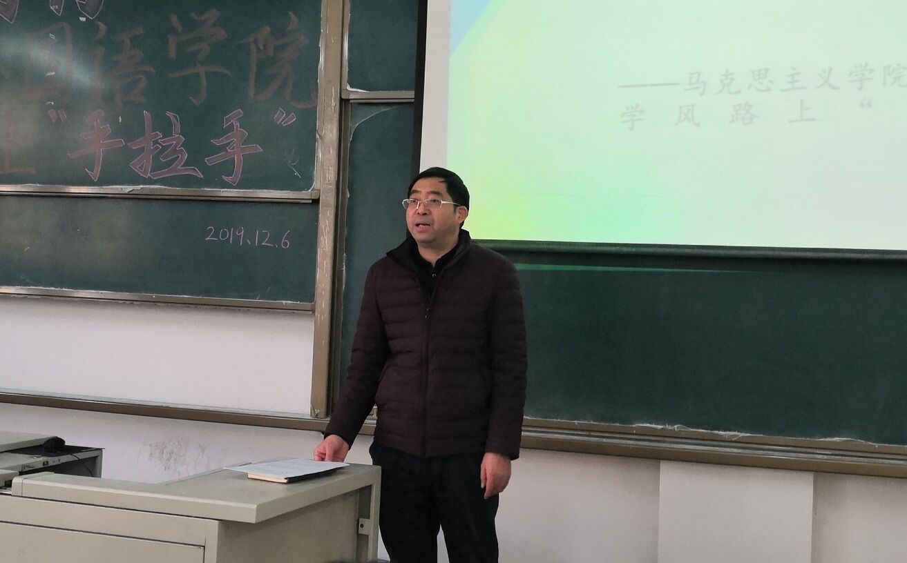 为推进学风建设,引导学生树立正确的人生目标和学习观念,2019年12月6日,马克思主义学院2019级思想政治教育专业本科班全体学生与外国语学院2019级英语专业部分学生在一号教学楼A102教室共同参与了“研途有你——学风路上手拉手”活动。参加此次活动的还有马克思主义学院党总支书记王晓梅,外国语学院党总支副书记郁志营以及马院团总支书记院田田等。