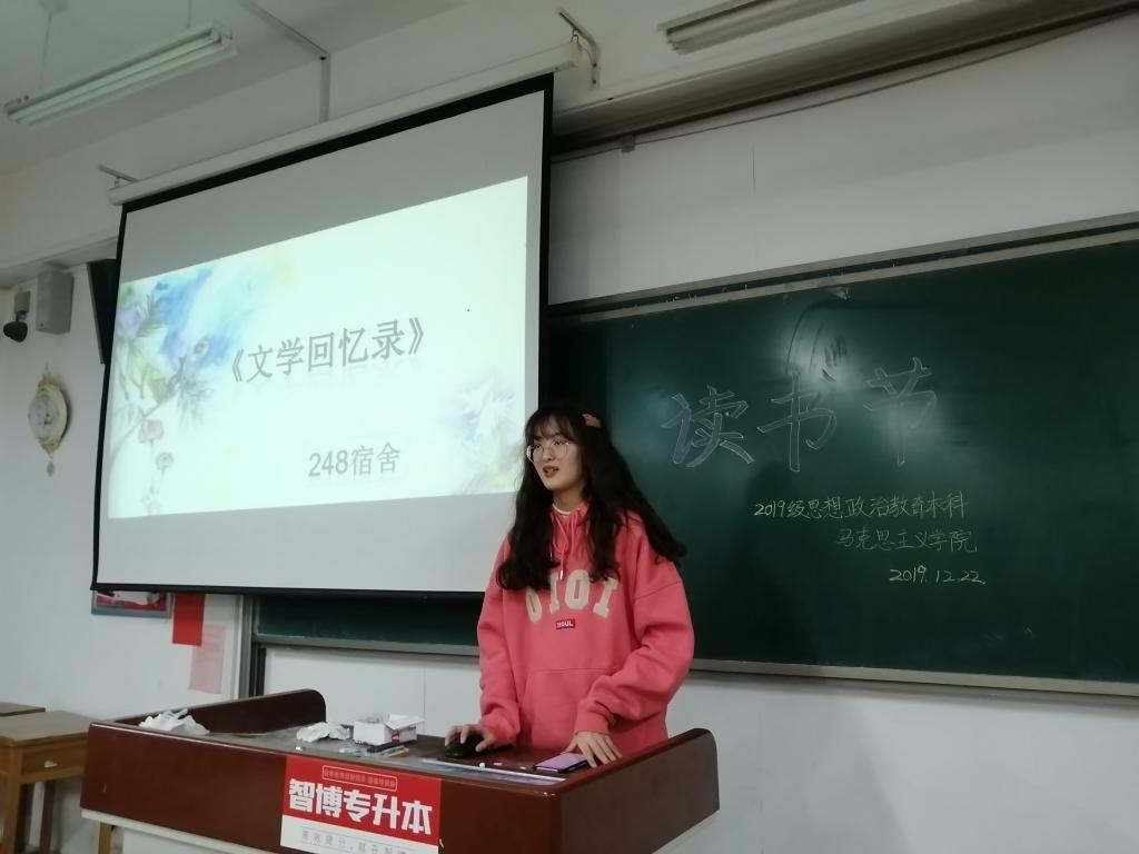 为了沉淀自己、增加课外阅读量、开拓视野,我院于2019年12月22日在二教A310举行读书节活动,此次活动2018、2019级思想政治教育专业全体同学参加。