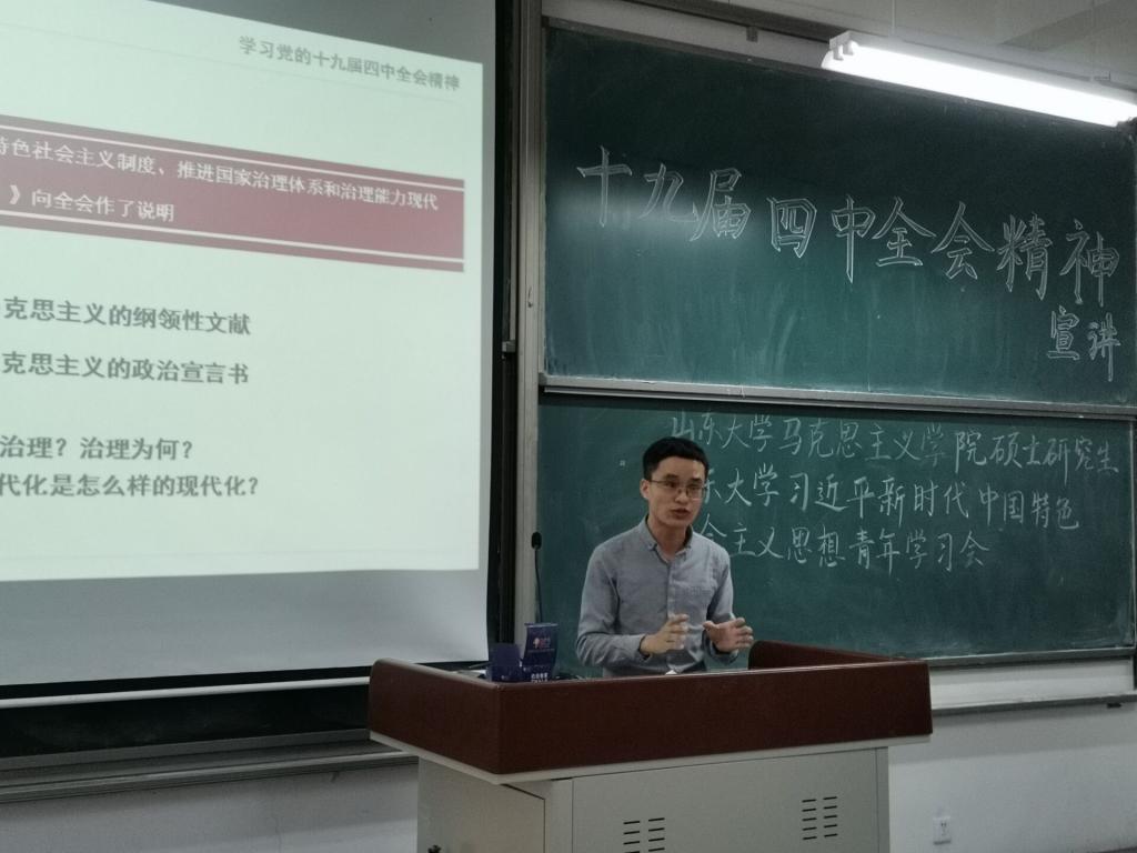 胡海鹏硕士在进行党的十九届四中全会精神宣讲