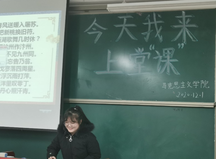 为提升我院2020级学生专业素养,并锻炼学生的备课、语言表达、板书等教师必备技能,2020年11月30日至12月5日,我院于2号教学楼A310教室举办了《今天我来上堂“课”》活动。参加此次活动的有马克思主义学院2020级思想政治教育本科班全体同学和2019级部分学生。