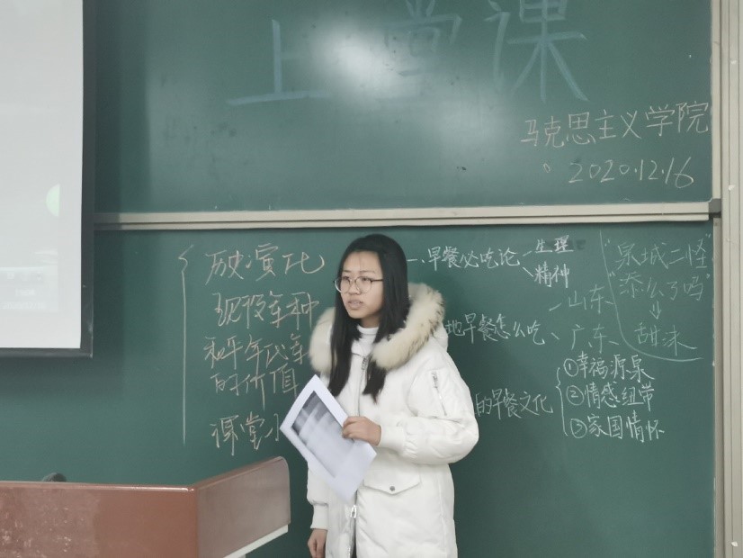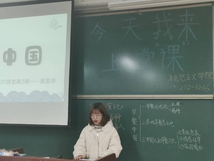 为提升我院2020级学生专业素养和教师职业技能,锻炼学生的备课、语言表达、板书等教师必备技能,2020年12月14日至19日,我院于2号教学楼A310教室举办了《今天我来上堂“课”》活动。参加此次活动的有马克思主义学院2020级思想政治教育本科班全体同学和2019级部分学生。