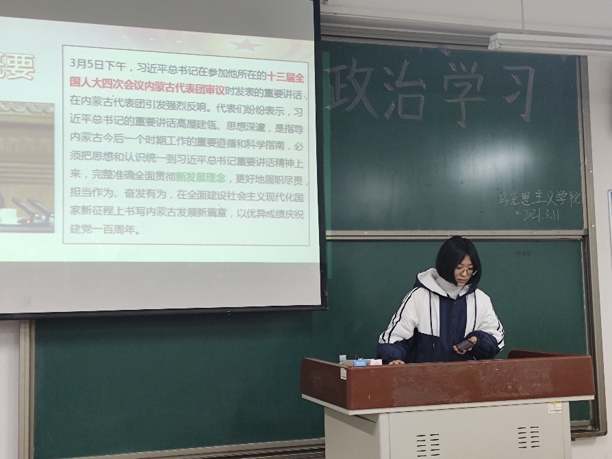 为引导同学们认识防风固沙的重要性,让绿色长城在祖国边境上长青不衰,2021年3月11日,我院于2号教学楼A310教室举办了以“统筹沙系治理,打造万里绿色长城”为主题的政治学习活动。参加此次活动的有马克思主义学院2018级、2019级和2020级思想政治教育本科班全体同学。