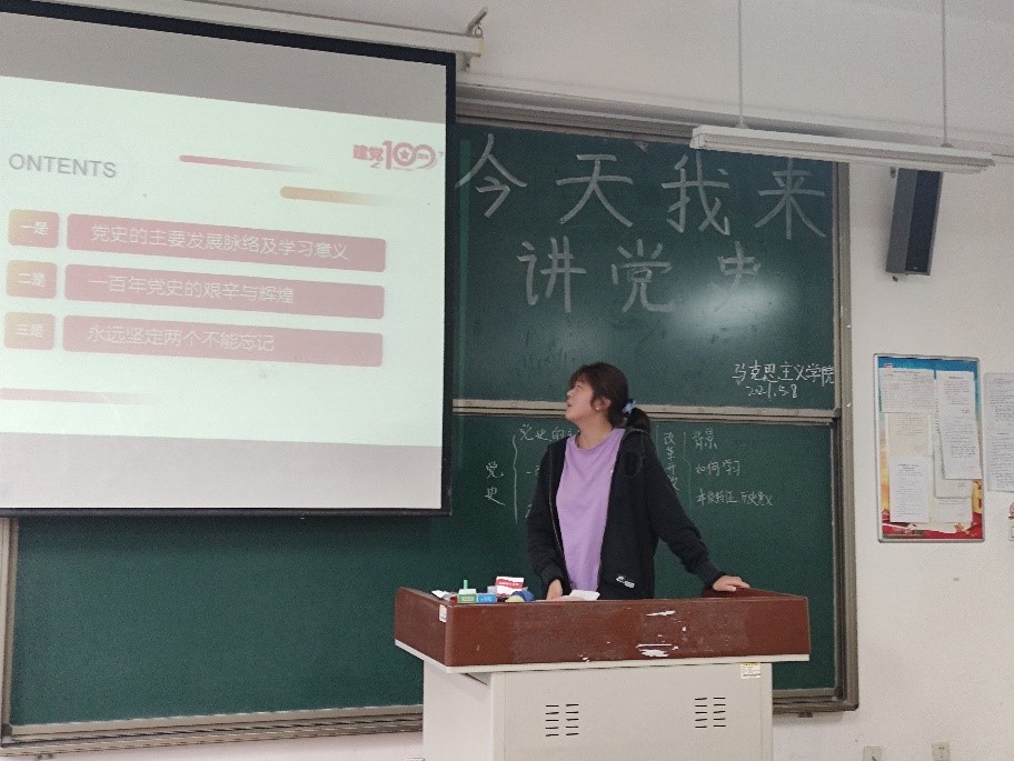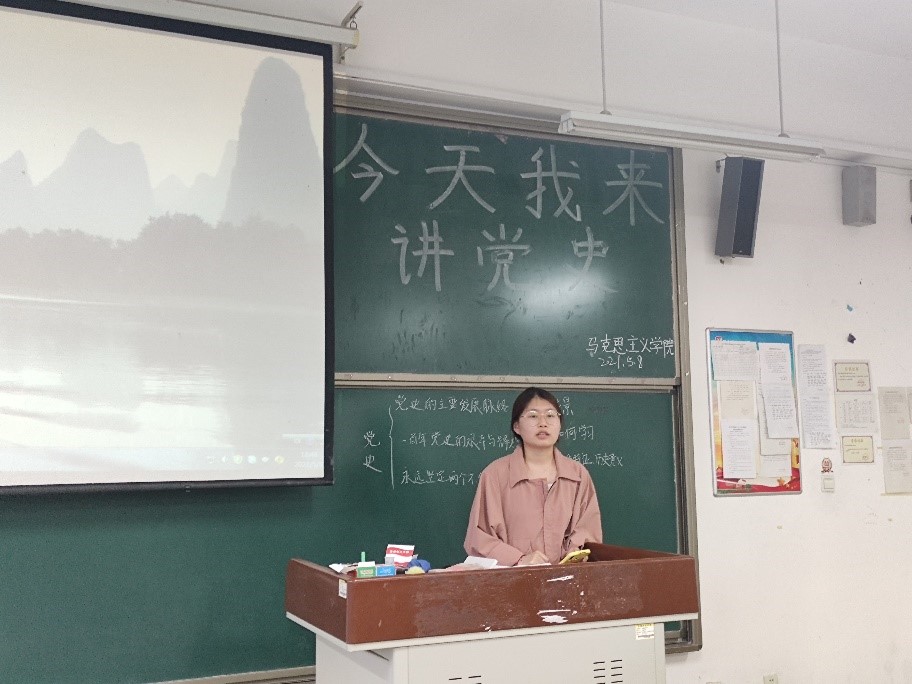 为坚定学生的理想信念,引导学生进一步向历史寻经验、求规律、探未来,2021年5月8日,我院于2号教学楼A310教室举办了《今天我来讲党史》活动。参加此次活动的有马克思主义学院2020级思想政治教育本科班全体同学和2019级部分学生。