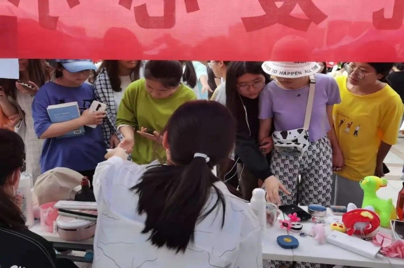 虽然义卖活动当日骄阳似火,但是这丝毫没有影响大家参与活动的热情。生活部的成员提前将义卖品搬运到义卖现场,布置好摊位,准备进行义卖活动。义卖活动当天,小小的桌子上整齐有序地摆放着各种物品,吸引了众多同学们的目光。同时,生活部成员们在义卖摊位上以实际行动感染着路过的每一个人,传递了相互关爱的正能量。光顾义卖小屋的顾客中除了同学也不乏老师,王晓梅书记、刘振光院长等老师也在忙碌之余光顾了义卖小屋,并在生活部成员的介绍下成功选到了自己心爱的“宝贝”,这是我院师生乐于助人,积极响应活动号召的体现。其中,王淑敏老师虽然因病请假未能到现场参加此次义卖,但是她通过线上捐款以及捐赠图书的方式贡献了自己的爱心。摊位上的商品琳琅满目,献爱心的人更是络绎不绝。陈赟老师也在义卖现场和同学们一起参与此次活动,展示自己的商品并对前来询问的同学们讲解爱心小铺的义卖商品。