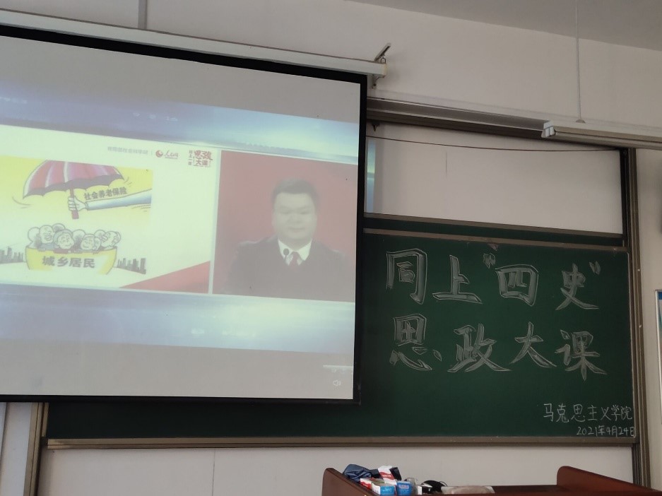 “同上‘四史’思政大课”第一堂课的主题为“同上党史思政大课”。课程开始前,马克思主义学院团委陈赟老师提出,中国共产党是中华民族发展的指向标,学习党史知识是必要的。观看党史知识相关课程能帮助当代大学生更深入地领会党的精神精髓,同学们应认真听讲,主动思考党史课堂精华所在。