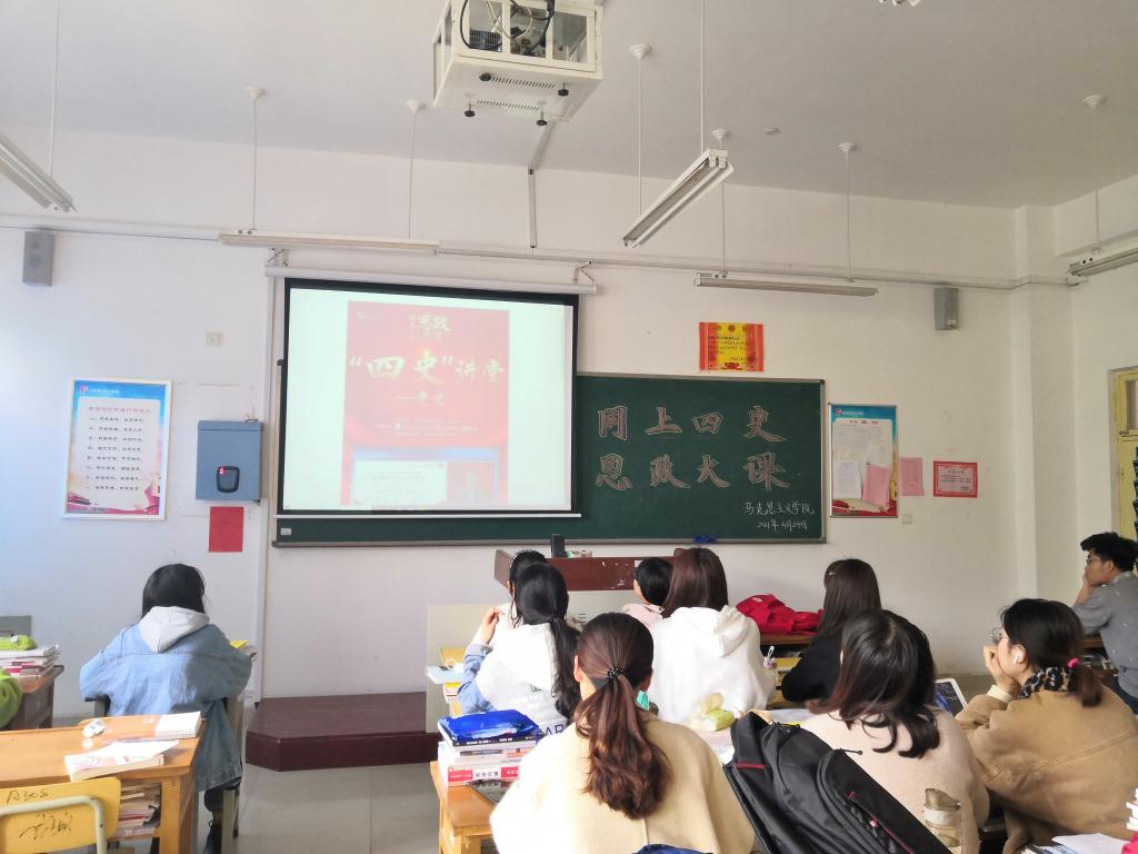 为坚定当代大学生理想信念,提升同学们的党性修养,2021年4月24日,马克思主义学院于2号教学楼A308、A310、A311教室组织同学们观看了“同上‘四史’思政大课”第一堂课。参加此次活动的有马克思主义学院全体教师和学生。