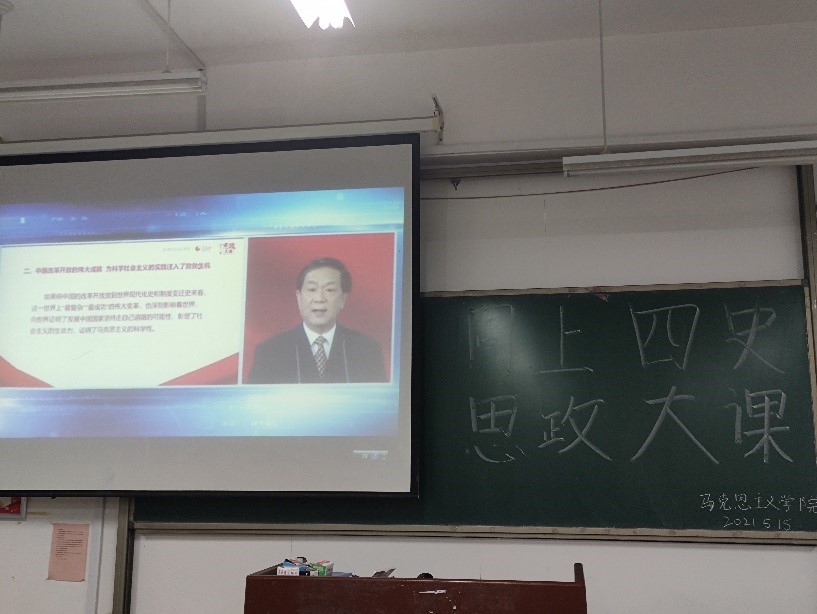 为深入贯彻落实习近平总书记关于深化思想政治理论课改革创新和“大思政课”的重要指示批示精神,全面落实习近平总书记在党史学习教育动员大会上的重要讲话精神,培养同学们树立正确的历史观,2021年5月15日,马克思主义学院于2号教学楼A308、A310、A311教室组织同学们观看了“同上‘四史’思政大课”第三堂课。参加此次活动的有马克思主义学院教师和全体学生。