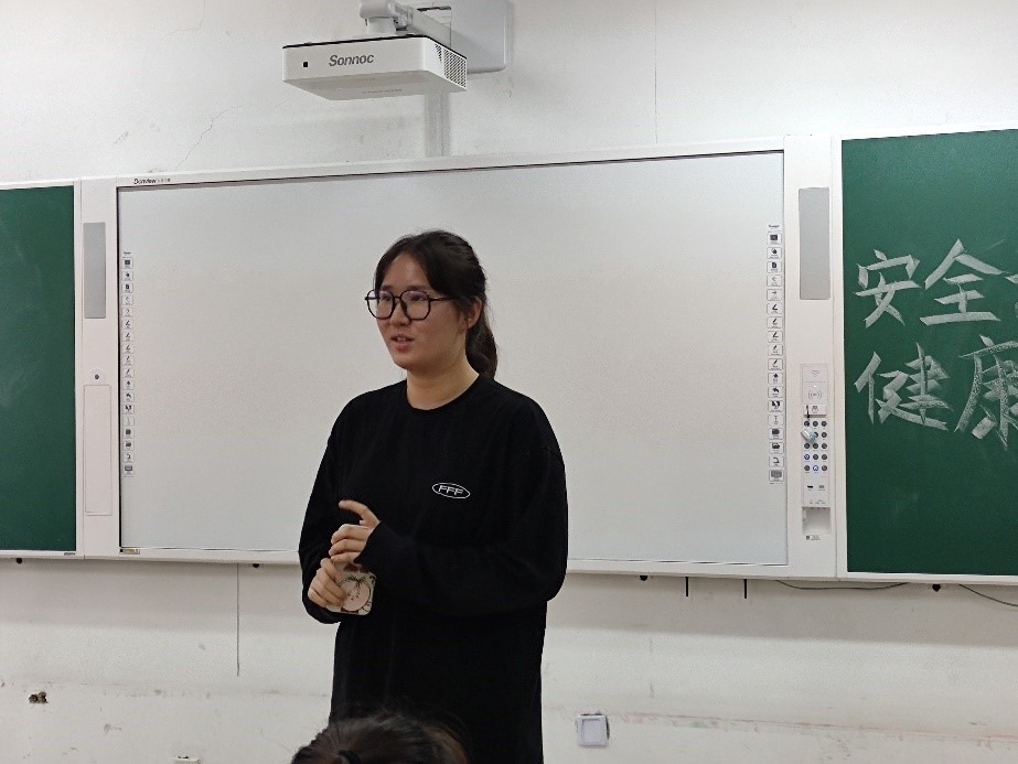 会议伊始,刘金玲老师以亲切的语言与同学们交流,并以即将到来的国庆假期为话题,提醒同学们注意出行安全、乘车安全、食品安全,让家长、老师放心。随后,刘金玲老师强调大学生要保持心理健康,并讲述了在宿舍、学习等不同情况下遇到问题时的解决办法,她鼓励同学们共同增强宿舍和班级的凝聚力和向心力,以便于同学们在遇到问题时可以互相倾诉、互相排解。刘金玲老师以自身生活中的实例鼓励同学们积极抒发自己的情绪,保持乐观的心态,主动关注自己的心理健康。其后,高鑫、法新越、赵俊杰同学依次上台,分别为同学们分享了防诈骗、心理健康、运动健康方面的知识。高鑫同学提醒同学们关注双山派出所发布的防诈骗信息和案例,保护好自己的财产。法新越同学就自己作为心理委员在过去一年中接触到的同学们的心理问题做出了总结,并表示欢迎同学们向她倾诉。赵俊杰同学提醒同学们在运动时一定要注意安全,听从体育老师的指导。同学们认真聆听并进行了记录。