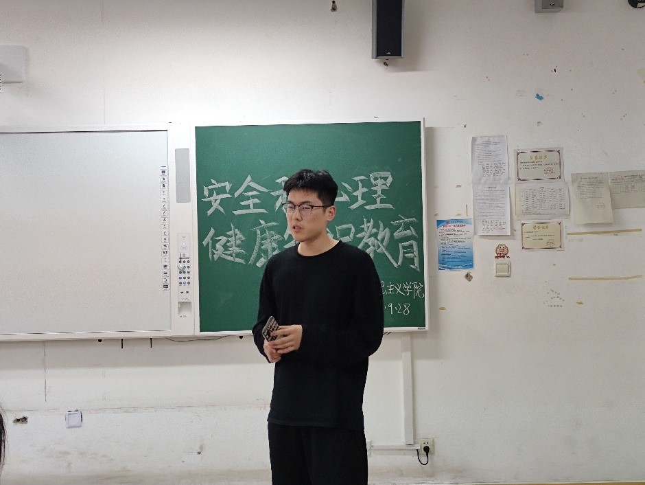 为增强同学们的安全意识,关注同学们的心理健康状况,2021年9月28日,我院2020级思想政治教育本科一班于2号教学楼A310教室举行了“安全和心理健康知识教育”主题班会活动。参加此次活动的有马克思主义学院办公室主任刘金玲老师和2020级思想政治教育本科一班全体同学。