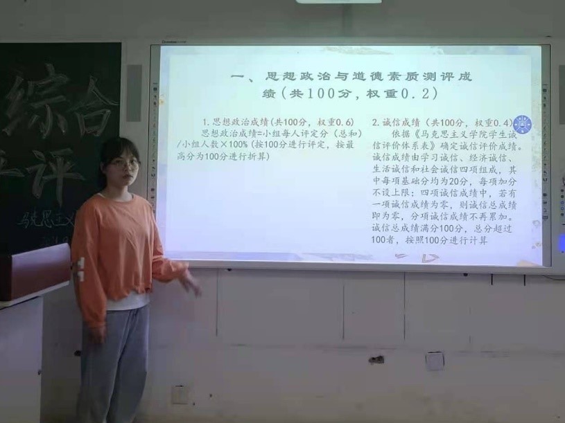 本次教育活动由我院学业就业部成员讲解。温立萍同学讲解了学院的考研率、考研经验学习以及如何及时转变学习方式三个方面。首先,温立萍同学向新生展示近两年学院的具体考研成绩和考研率,并指出考研佳绩的取得,既是考研学子寒窗苦读、不懈努力的结果,也是学院不断提高教学质量、注重学生全面发展的重要体现。随后,她为新生总结三点考研经验:一是确定考研目标,全心投入备考;二是择校需谨慎,选择大于努力;三是要树立良好的心态。最后,她通过比较大学学习方法与高中学习方法的差别,强调新生需要及时转变学习方式,要培养自学能力和提高时间管理能力,制定切合实际的学习计划和目标。杨肖萍同学分别讲解了三个部分:综合测评的组成部分及计算方法、评奖评优的实施标准和两者的建议及做法。杨肖萍同学讲解了综合测评评分的具体内容,综合测评成绩由基础性素质成绩和发展性素质成绩组成,其中基础性成绩占75%,发展性成绩占25%。她还重点介绍了奖学金的评定条件以及优秀学生、优秀学生干部和先进班集体的评选条件,并强调在大学期间考试坚决不能作弊,做到考试不挂科。她鼓励2021级新生要夯实基础,学习好专业知识,学习英语,准备四六级,为考研打下基础,同时,积极参加社团活动以及各种校级和院级比赛,锻炼自己的能力。