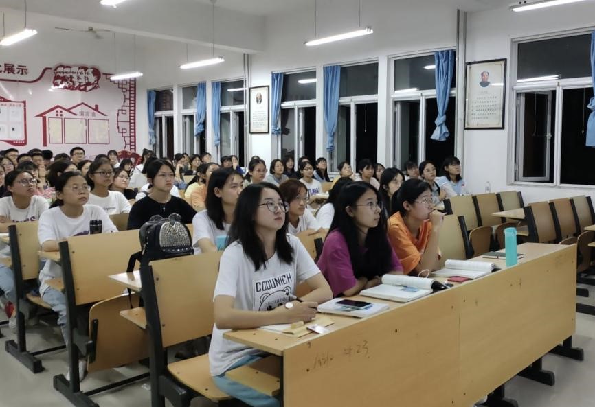 首先,王书征同学以“转变生活状态”为出发点,指出新生们结束了漫长的暑假生活,步入了崭新的大学生活,无论是学习和生活都有需要适应的地方,呼吁同学们做到“早睡早起,自律生活;做事专注,克服困难;敢想敢要,争夺未来;尊重室友,和谐相处;认清自己,接受一切;保持独立,自我判断”等要求。其次,文艺部主讲人王书征同学结合我院实际情况,展示了我院啦啦操比赛、迎新晚会、元旦晚会和毕业晚会的现场情况,具体讲解了新生们后续所要参加的几项文体活动,大大激发了同学们的兴趣,为今后文娱活动的开展做了准备。最后,王书征同学强调,新生们参加各类文体活动的时候要量力而行,先进行适当的了解,并且在已经参与活动的情况下,要在这个活动中发光发热,最大化的展现自己的能力。
