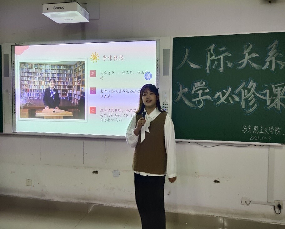 本次教育活动由学生会秘书处成员崔乐遥同学主讲,课堂伊始,她对2021级新生的到来表示欢迎,并提到,大学是同学们步入社会的过渡阶段,在这一阶段,学会调节人际关系是极为重要的。课堂中,她向同学们介绍了在进入大学后所要处理的几种主要人际关系:师生关系、同学关系、宿舍关系。在师生关系部分,崔乐遥同学介绍了我院强大的师资力量并对学院老师进行了介绍。她阐明,老师对我们传道、授业、解惑,而学生也应回以老师尊重与理解;在同学关系部分,她提到,一个班级是一个整体,应宽以待人,与同学们互帮互助;在宿舍关系部分,她通过列举我院2017级考研优秀宿舍说明了良好的宿舍关系可以促进彼此的发展,同时好的宿舍关系也需要大家以舍为“家”,用心守护这一道理,提醒同学们要学会彼此包容,相互关爱。课堂末,崔乐遥同学再次强调了良好人际关系的重要性,并且祝愿2021级新生能尽快适应大学生活,找到适合自己的生活和学习节奏。