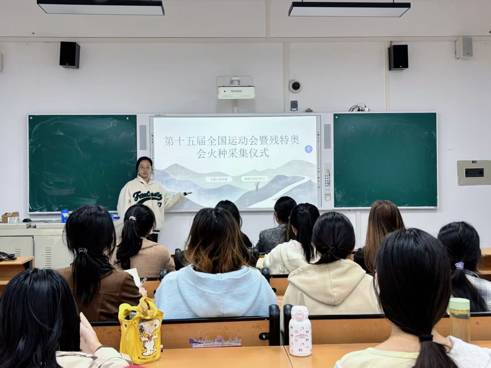 本次时政述评以近期发生的时政热点为主要内容,邹士好、付文硕、崔玉树等九位同学担任主讲人。活动中,邹士好同学讲述了10月9日第十五届全国运动会暨残特奥会火种采集仪式这一新闻,让同学们感受到奥林匹克精神与科技创新、大湾区发展深度融合的时代主题。付文硕同学着眼于10月10日习近平就朝鲜劳动党成立80周年向朝鲜劳动党总书记金正恩致贺电,为同学们讲解了中朝关系不断向前发展,为地区乃至世界和平稳定和发展繁荣作出积极贡献。赵鑫怡同学带领大家围绕10月3日“蛟龙”号在北极成功完成10余次载人深潜展开讨论。李义璇同学介绍了10月11日引力一号遥二运载火箭发射成功这一新闻。崔玉树同学介绍了9月26日神舟二十号航天员乘组圆满完成第四次出舱活动。此外,秦艺瑞、朱丽洁、段家腾等同学也就时政热点进行述评,各位主讲人的精彩讲述,不仅引导同学们以客观理性的视角真切感受国家发展的稳健足迹,更激励大家将个人理想融入时代进程,把家国情怀转化为求真务实的奋斗实践,鼓励同学们以更宏大的格局、更扎实的能力,从容应对未来道路上的种种考验,为实现中华民族伟大复兴的中国梦贡献自己的力量。
