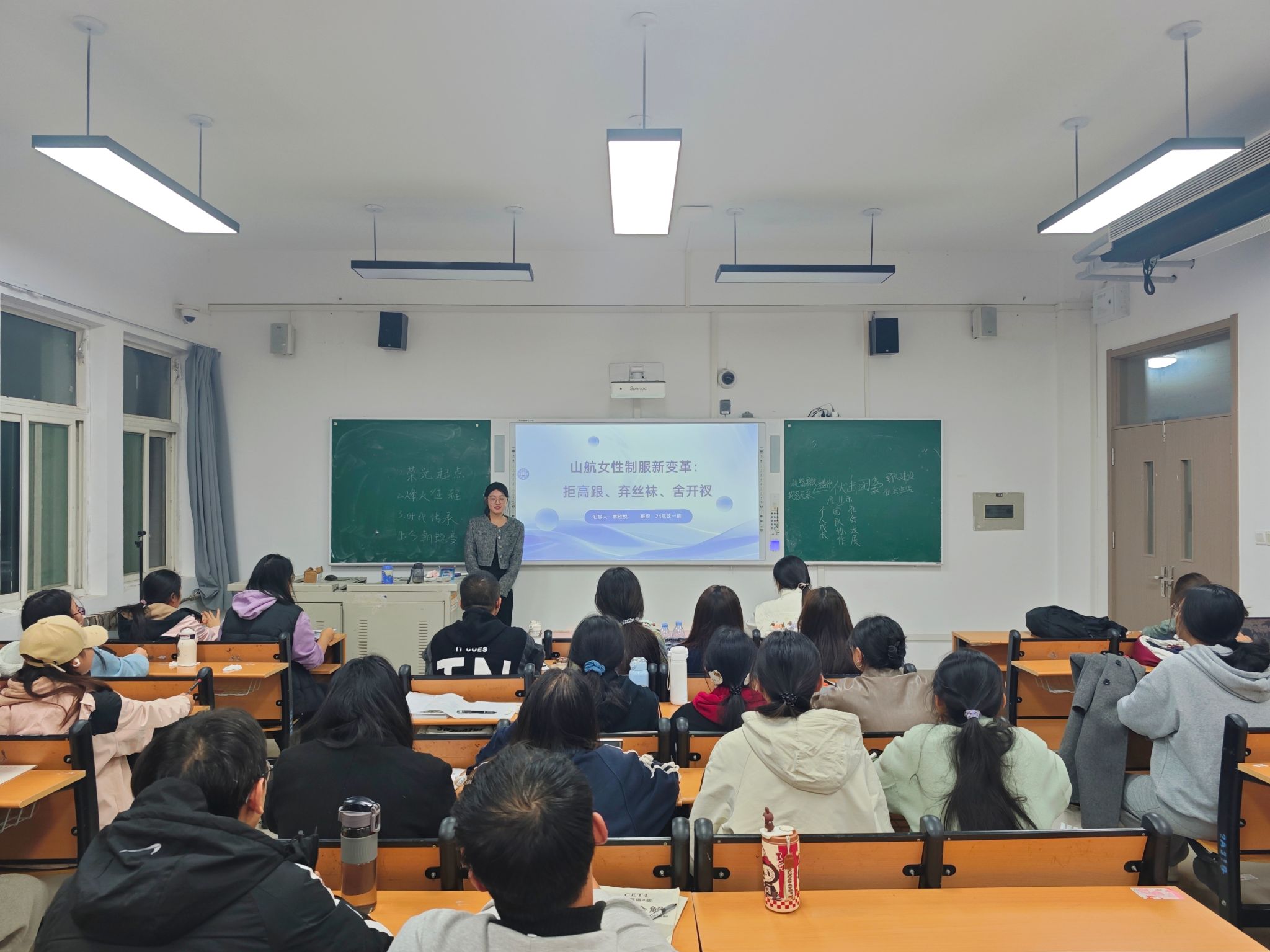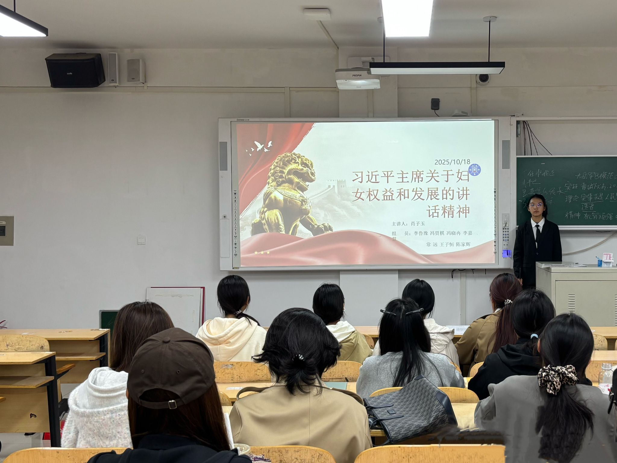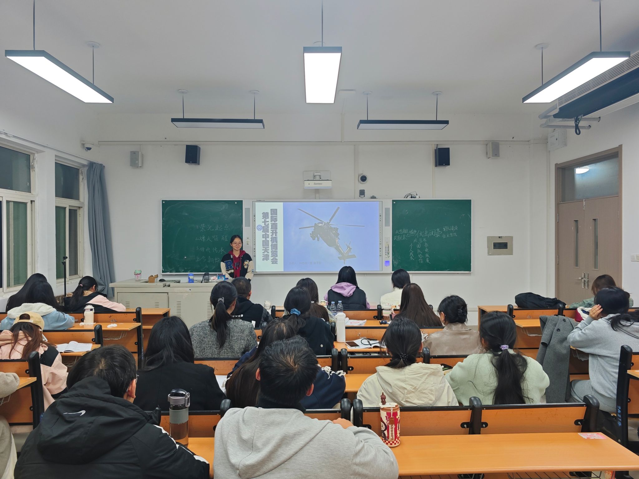 本次时政述评以近期发生的时政热点为主要内容,张子彤、李文、肖子玉等11位同学担任主讲人。张子彤同学聚焦于10月16日第七届中国天津国际直升机博览会开幕的热点新闻展开阐述,让同学们了解到航空装备是我国制造业发展的一个重点,激发了大家的民族自豪感;李文同学介绍了10月13日我国成功发射试验三十一号卫星的时政新闻;肖子玉同学分享了10月13日习近平出席全球妇女峰会开幕式并发表主旨讲话这一新闻,使同学们深刻认识到妇女是人类文明的重要创造者、推动者、传承者,推进妇女事业发展是国际社会的共同责任。陈子钰同学围绕10月1日《求是》杂志发表的习近平总书记的重要文章《中华民族共同体的形成和发展是人心所向、大势所趋、历史必然》展开讲解。此外,聂文娇、李紫林、林欣悦、彭爽等同学也就时政热点进行述评。各位主讲人准备充分、阐述精彩,将专业知识与时政热点紧密结合,引导同学们以辩证思维来分析问题,以全球视野来看待发展,让大家在赞叹国家发展成就的同时,也深刻认识到自身肩负的时代使命。同学们纷纷表示,将把今天的所学、所思、所悟转化为砥砺前行的不竭动力,以更开阔的视野、更清醒的头脑、更昂扬的斗志,投身于新时代的洪流,为实现中华民族伟大复兴的中国梦贡献青春力量。