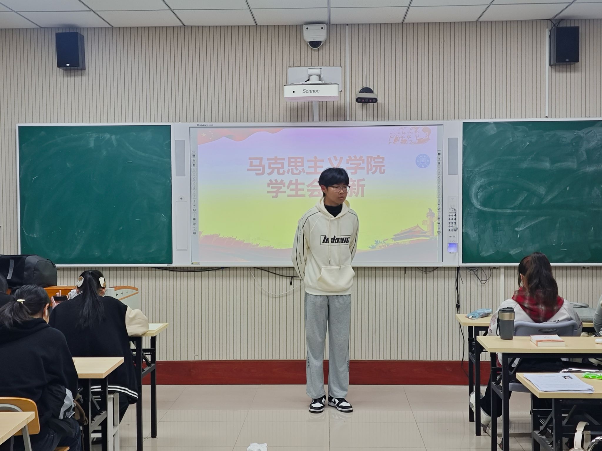 各部门负责人围绕部门日常工作难点和突发情况的处理,以及团队协作配合等场景化问题进行针对性提问,旨在考察参选同学的应变能力、思维逻辑及对部门工作的认知程度。竞选同学凭借出色的逻辑思辨与语言表达能力,从容应答各类提问,充分展现了马院学子锐意进取、勇于拼搏的精神风貌。