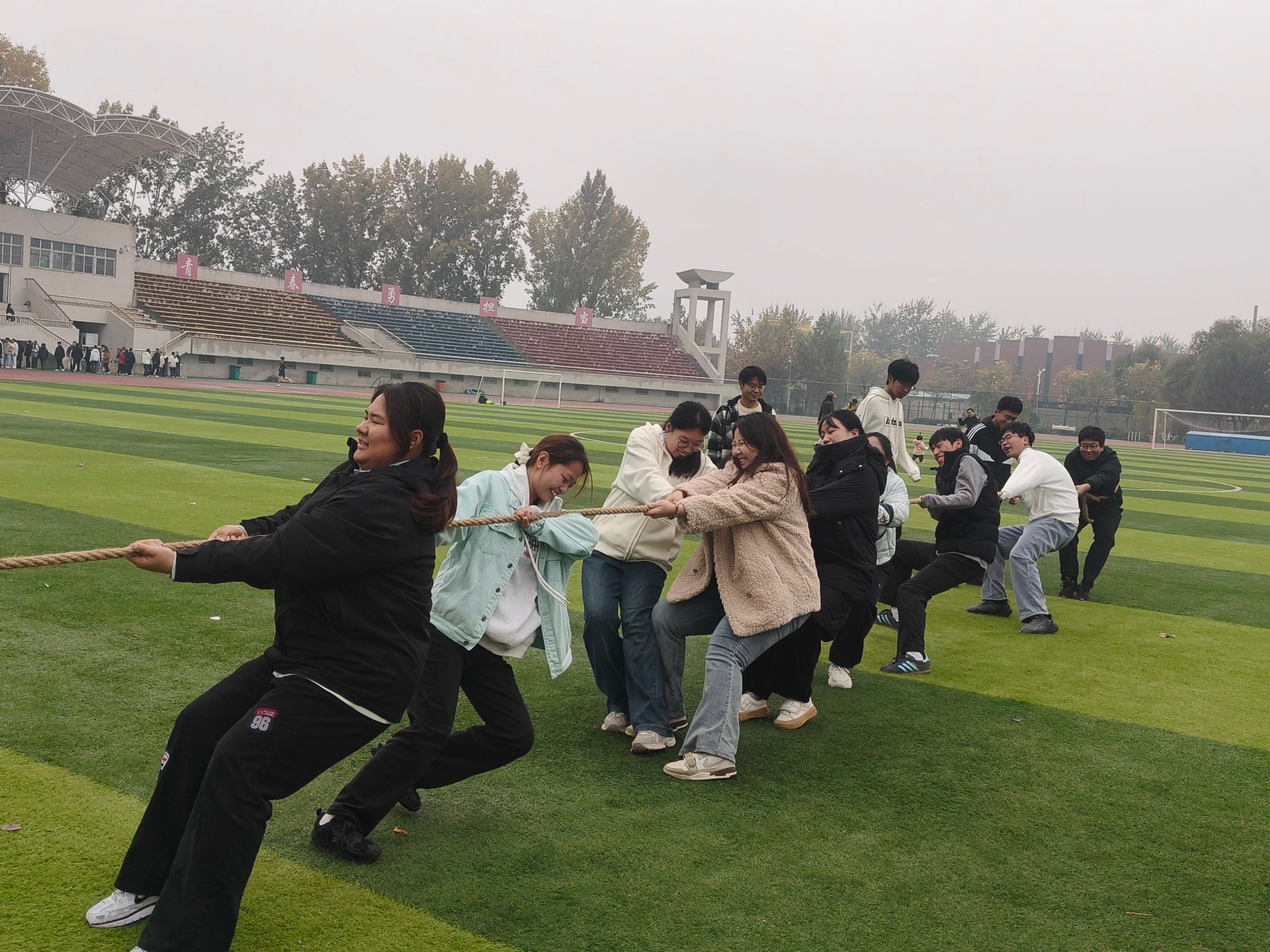 为帮助 2025 级新生快速融入集体、增进同窗情谊,同时在体育锻炼中厚植爱国情怀、传承红色基因,11 月 8 日,马克思主义学院以“铭记抗战史诗,传承红色基因”为主题,精心策划举办新生红色趣味运动会。2025 级全体新生齐聚赛场,以运动为媒、以拼搏为笔,在欢声笑语中破冰聚力,在协作竞技中感悟红色精神,书写了青年学子团结奋进、爱国向上的青春篇章。