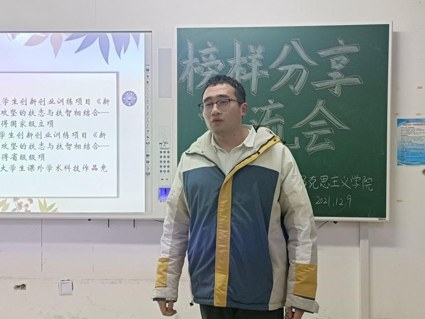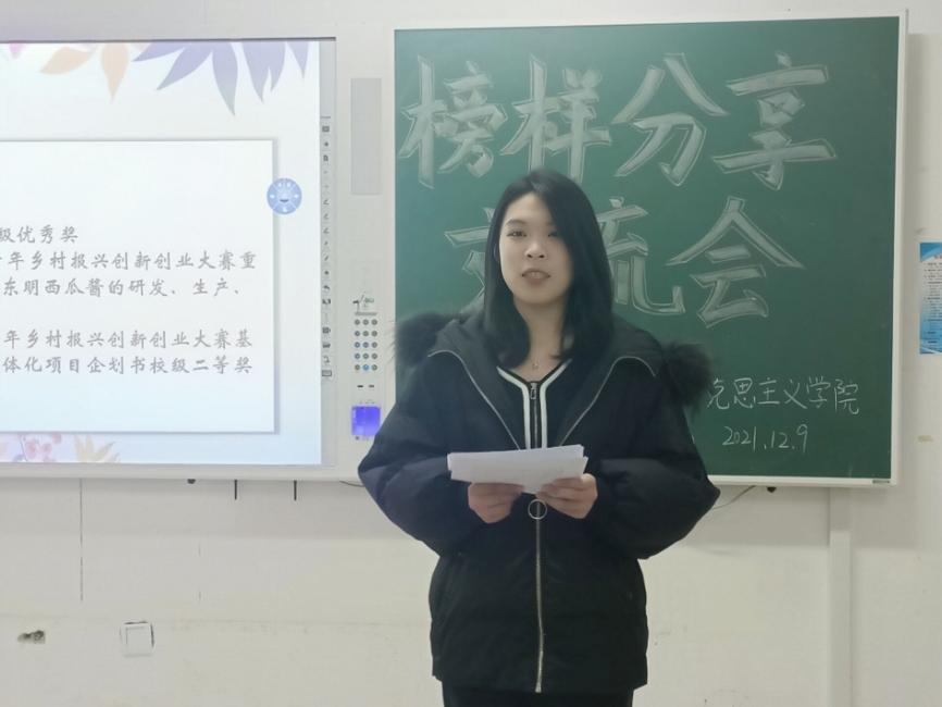 为帮助我院学生全心投入大学学习,合理规划大学生活,不断提高自我修养,全面发展自身能力,2021年12月9日,我院于2号教学楼A310教室举办了以“学习榜样品质,汲取奋进力量”为主题的榜样面对面互动交流会。参加此次活动的有马克思主义学院2018级思想政治教育专业本科班侯庆山同学、2019级思想政治教育专业本科一班张彤蕾同学、2019级思想政治教育专业本科二班逄晓乐同学、2020级思想政治教育本科二班于佳瑞同学、黄烁同学以及2020级、2021级思想政治教育本科班全体同学。