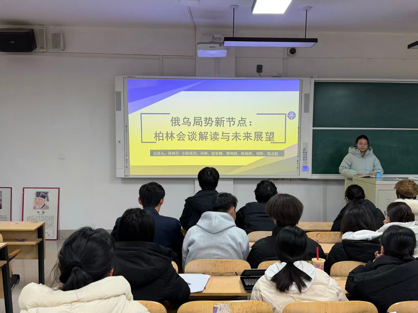 本期时政述评是马克思主义学院打造“思政小课堂与社会大课堂”融合育人模式的重要举措,有效拓宽了学生的国际视野,强化了学生家国情怀与责任担当。