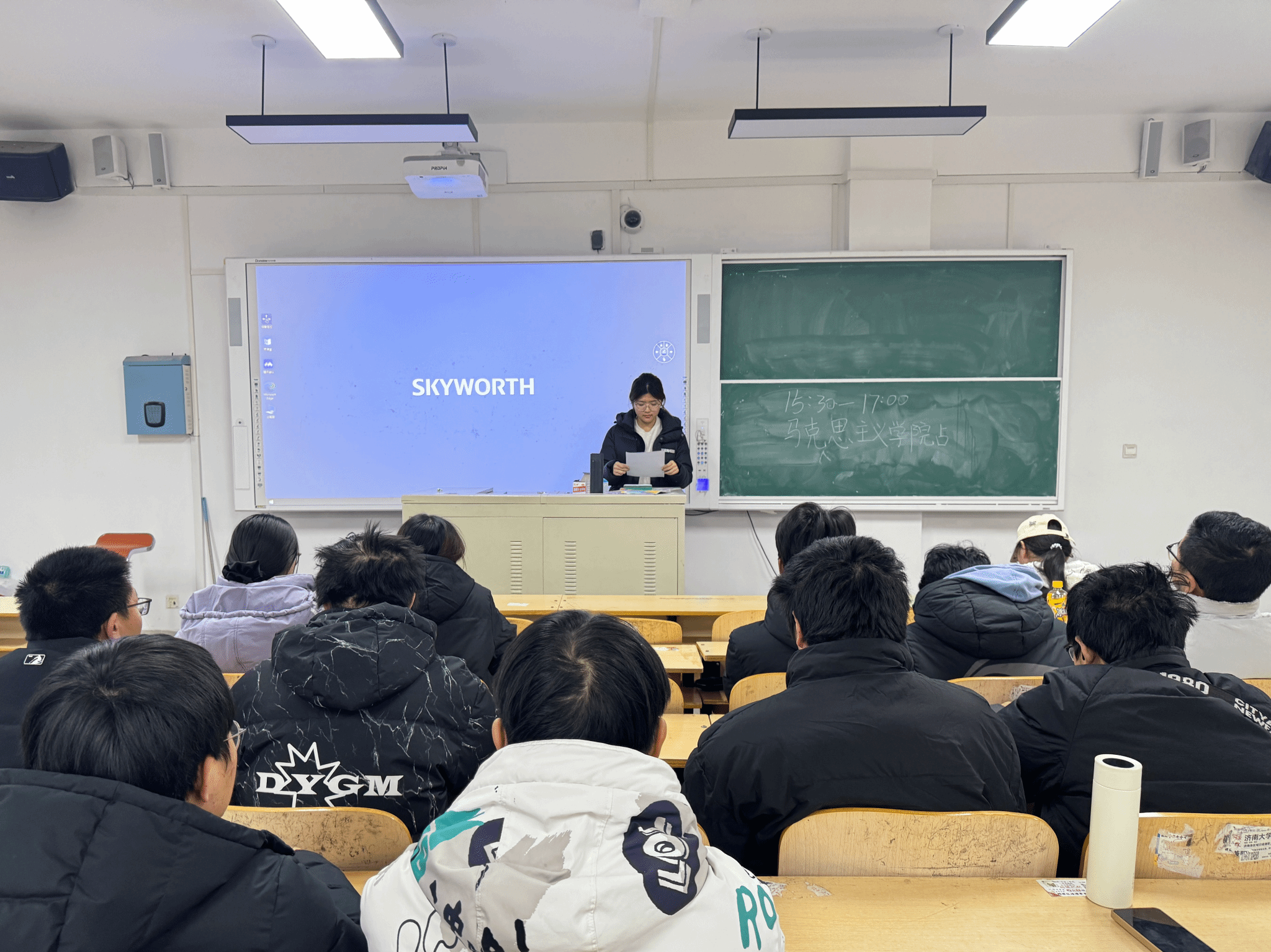 2025年12月25日,马克思主义学院第二十期“悦读经典”分享会在2号教学楼A302教室举行,刘同赫老师和2025级全体学生共同参加此次分享会。