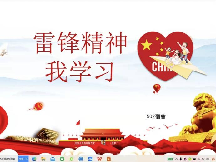本次政治学习活动由杨俊杰和徐冰鑫同学作为主讲人。杨俊杰同学首先通过雷锋日记和描写雷锋故事的书籍概括了雷锋精神的内涵,即热爱党、热爱祖国、热爱社会主义的崇高理想和坚定信念、服务人民的奉献精神、锐意进取的创新精神、艰苦奋斗的创业精神以及干一行爱一行、专一行精一行的敬业精神。其次,她着重讲解了疫情防控下甘于奉献的志愿者们的事迹。她通过介绍真人真事,表明新时代无数志愿者以实际行动生动彰显了雷锋精神,并激励同学们自觉投身到热心助人的志愿服务中去。徐冰鑫同学介绍了雷锋的成长历程,他讲解了当代“雷锋”的故事。通过他们的故事,同学们明白了每一位中国人是平凡而伟大的,每一位默默付出的中国人都是当今时代的“雷锋”。最后,他讲述了大学生弘扬雷锋精神的方法:当代大学生应认真理解雷锋精神的实质意义,学雷锋不是一句空话,更不是做做样子,而是用自己的行动感染周围人,多关心他人。