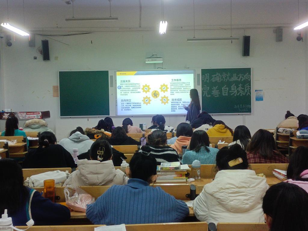 活动伊始,我院全体同学每人完成了一份职业生涯规划书,在制作过程中逐渐认识自我、完善自我。随后,我院参加比赛的同学每人均制作了一份用于展示的PPT,从中讲解自己对目标职位在社会中的需求认知。杨肖萍同学通过阐述自我认知、职业认知与决策、计划与路径三个方面,向同学们详细介绍自己的职业生涯规划情况。她指出,本次活动帮助她更加深入地考虑自己想从事的行业或岗位,明确自己想朝哪一个方向发展等职业规划问题。王晴同学以讲解自身对就业前景的看法,以及如何解决自身在竞争目标岗位时的劣势或缺点,详细阐述了自己的求职意向。在职业生涯规划的介绍中,她从接下来的大学学习生活,以及怎样去为自己的期望做准备制定了详细计划。最后,我院组织学生干部进行职业生涯规划书的打分评选,依据同学们的得分情况进行排名,推选优秀职业生涯规划书后进行公示。
