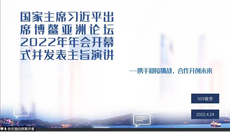 为拓宽同学们的视野,引导同学们关注社会现实,2022年4月25日,我院学生通过线上的方式举办了新闻讲评活动。参加此次活动的有马克思主义学院2021级思想政治教育本科班全体同学。