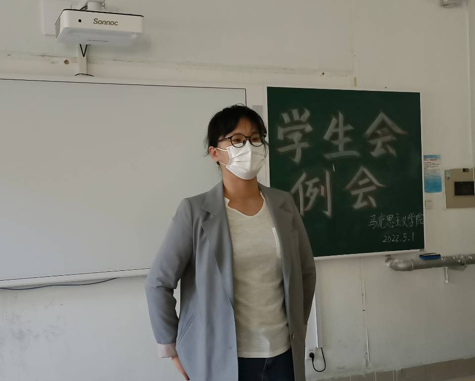 为总结近期学生组织工作,促进学生组织工作发展,加强对学生组织成员学习与工作的深入性指导,2022年5月1日,我院于1号教学楼A317教室举办了学生组织例会。与会人员有马克思主义学院团总支副书记王雅文老师以及全体学生会成员。